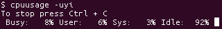 Mit verschiedenen anderen Optionen lassen sich auch andere Werte anzeigen, wie z.B. die Nutzung der CPU der Benutzerprogrammen (-u), des Betriebssystems (-y) und des Leerlaufs (-i):